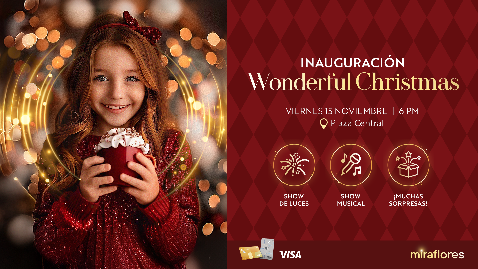A Wonderful Christmas: Vive la Magia Navideña en Miraflores La época más especial del año ha llegado a Miraflores, y estamos listos para recibirte con todo el encanto y la calidez de *A Wonderful Christmas*. En esta temporada navideña, cada rincón de Miraflores se ha transformado para llenarse de luces, alegría y la emoción de compartir momentos inolvidables en familia o con amigos. Desde experiencias interactivas hasta premios imperdibles, todo está diseñado para crear un ambiente que te llene de asombro y felicidad.